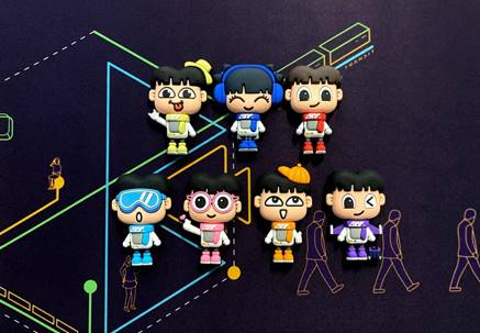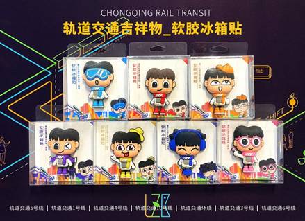 本次推出的软胶冰箱贴共计7款,分别是重庆轨道交通1号线、3号线、4号线、5号线、6号线、10号线、环线,丹丹和迪迪分别身着相应线路的标识色的衣衫,向大家讲述属于重庆轨道交通的线路文化。